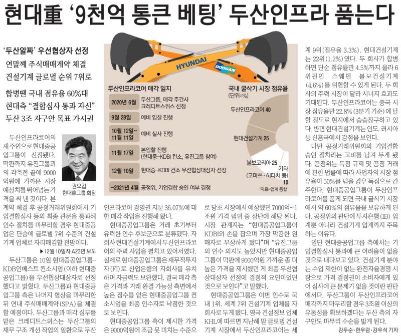 ● 현대重, 두산인프라 새 주인 된다…글로벌 빅5 도약