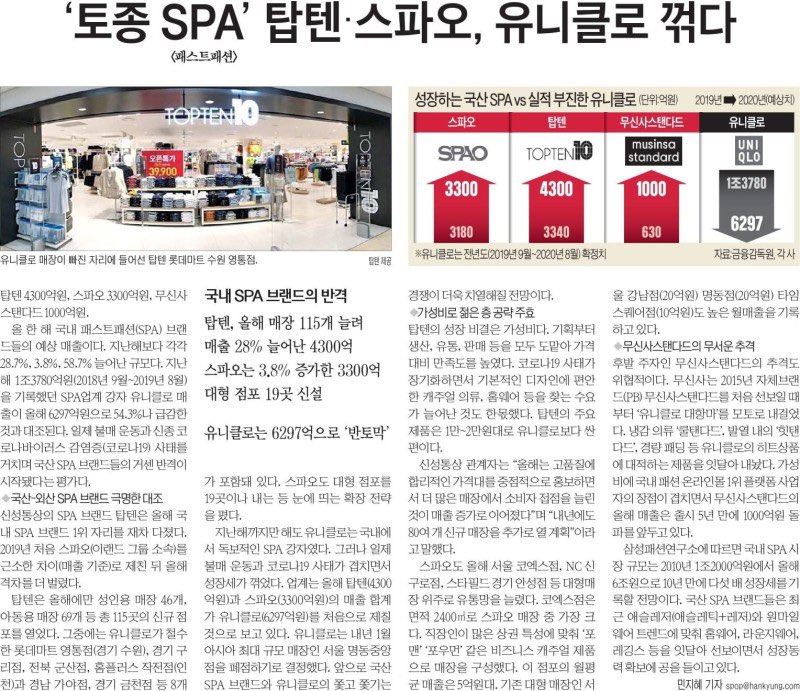 ● '토종 SPA' 거센 반격…탑텐·스파오, 유니클로 꺾었다