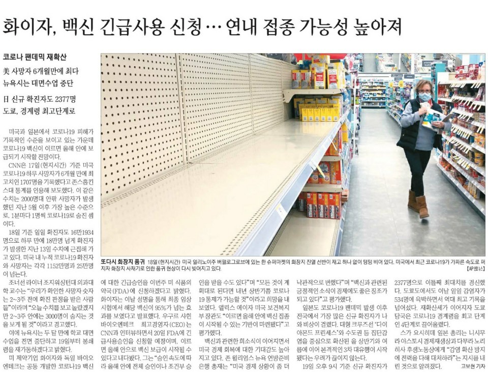 ● 화이자, 백신 긴급사용 신청…연내 접종 가능성 높아져